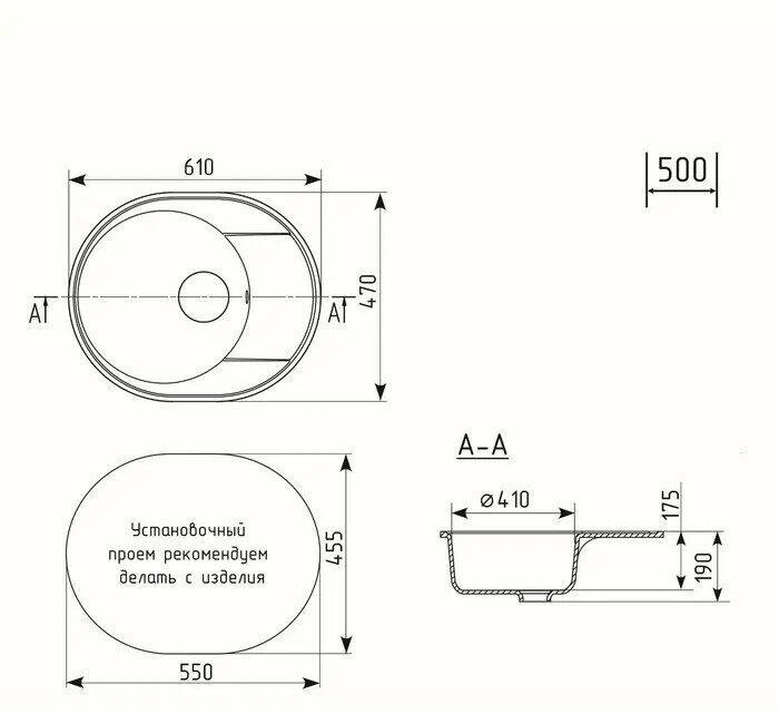 Каменная мойка для кухни врезная PRAKTIK 610 цвет черный оникс интересное: