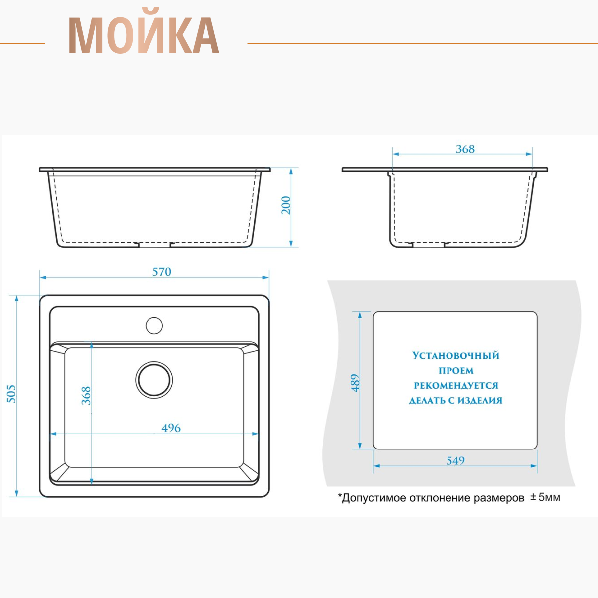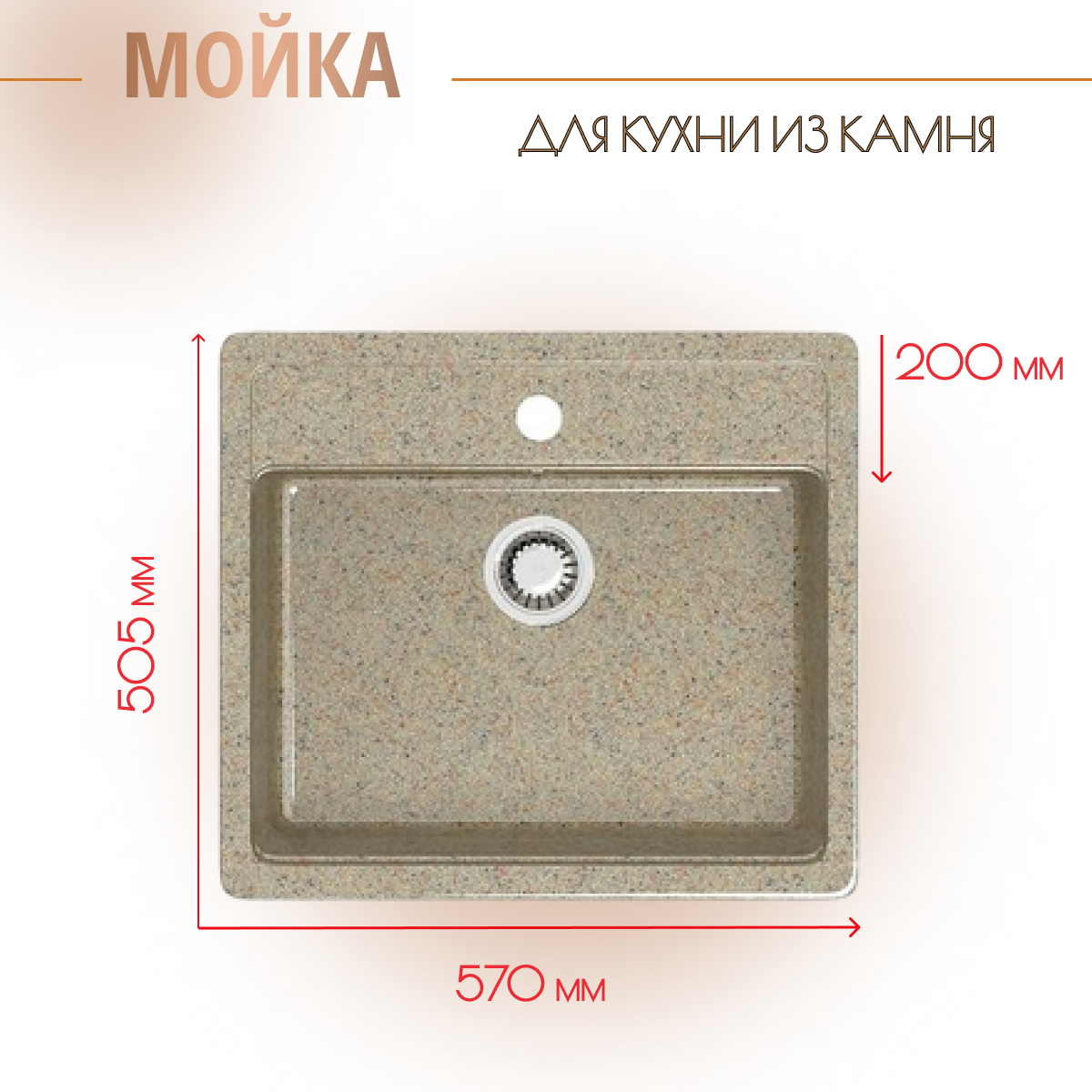 Купить Мойка из искусственного камня врезная Plumberhouse Z9Q5 570х505х200 мм.