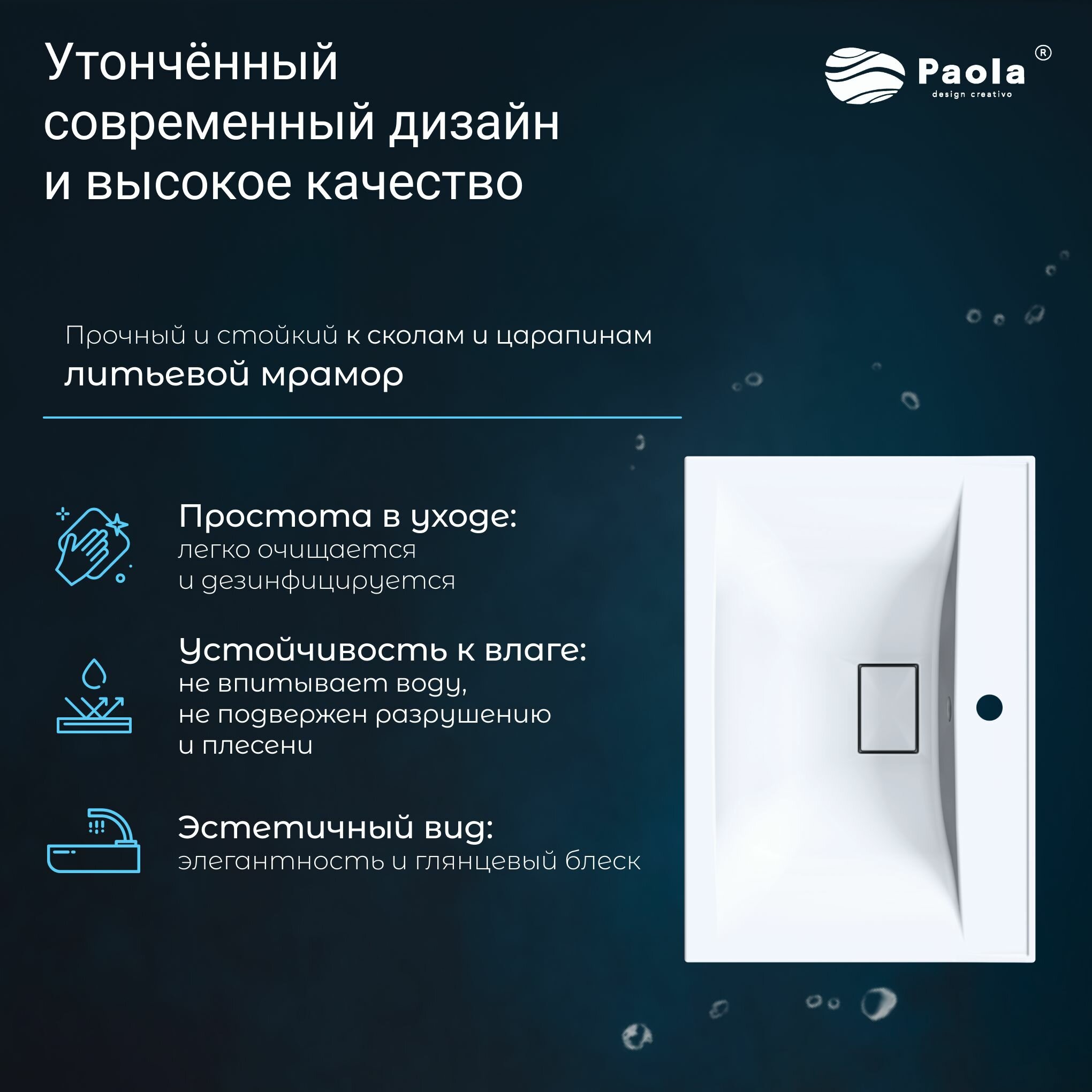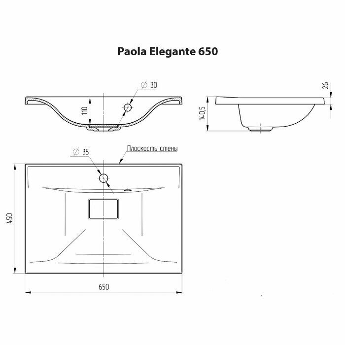 Раковина Paola Elegante полувстраиваемая, 65 см, прямоугольная интересное: