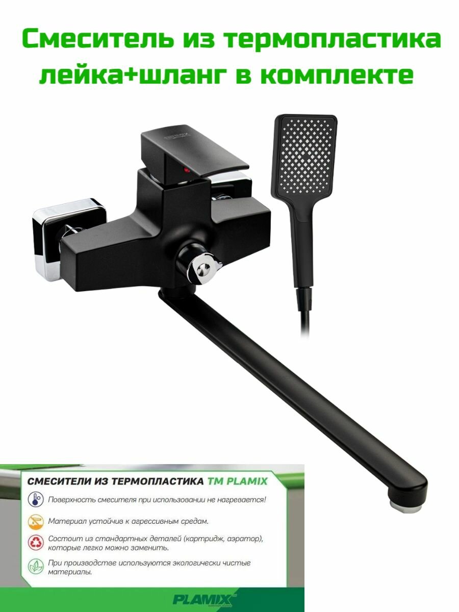 Смеситель в ванную из высокопрочного термостойкого АБС пластика, Plamix CEZAR-006(EURO), лейка+шланг в комплекте