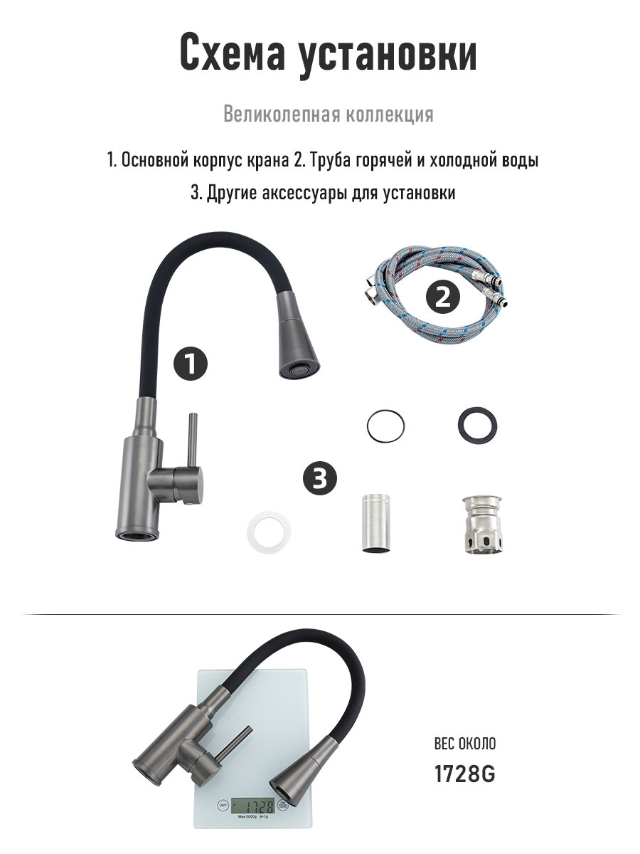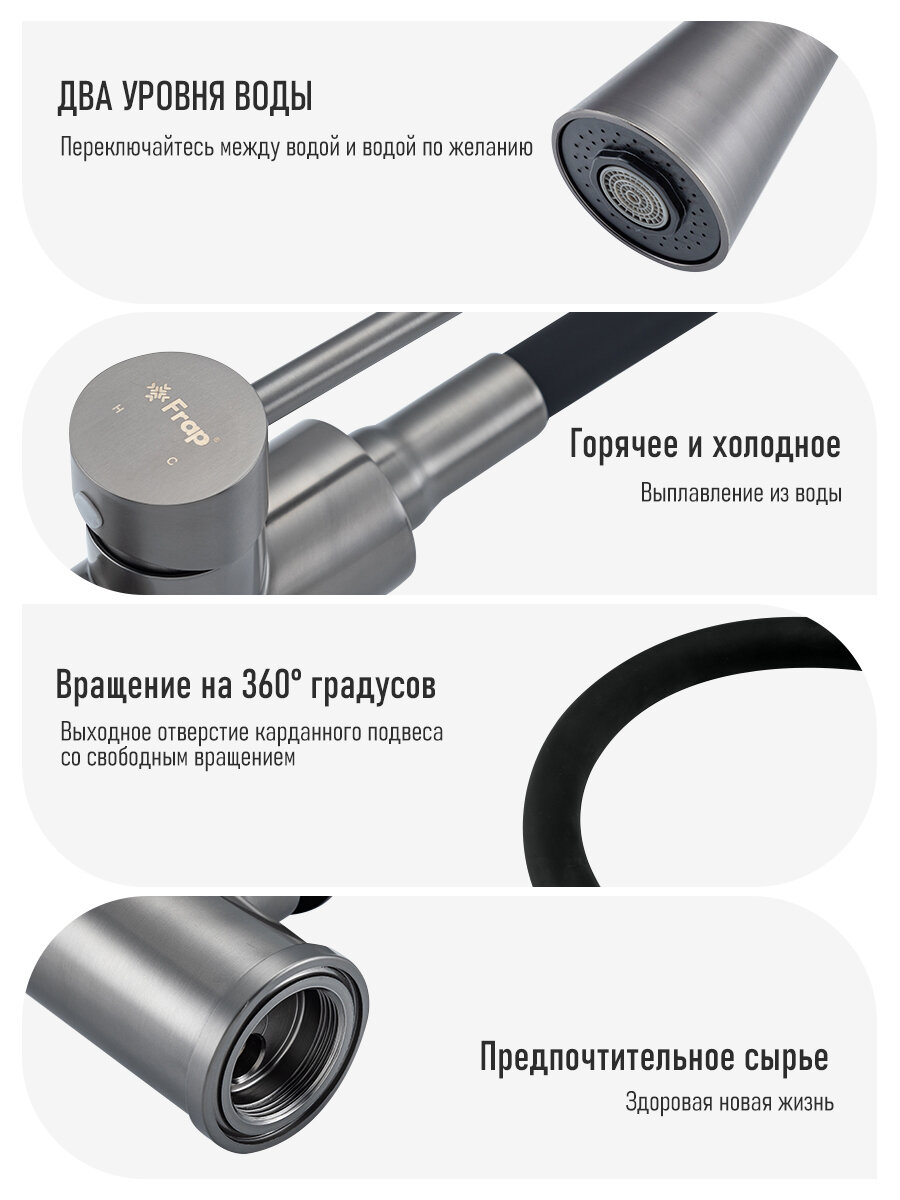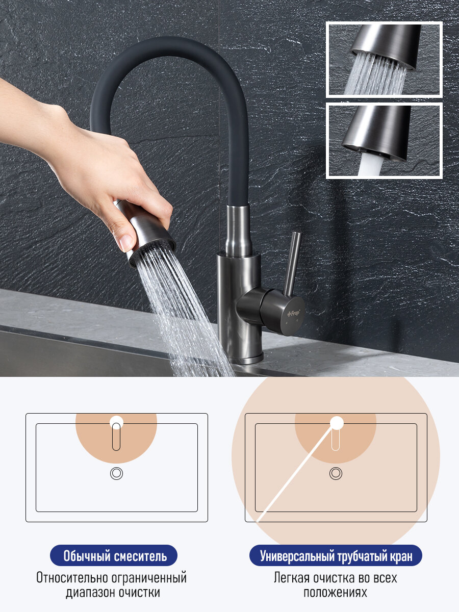 Смеситель для кухни с гибким изливом кран на кухню Frap YF4044-9 оружейная сталь интересное: