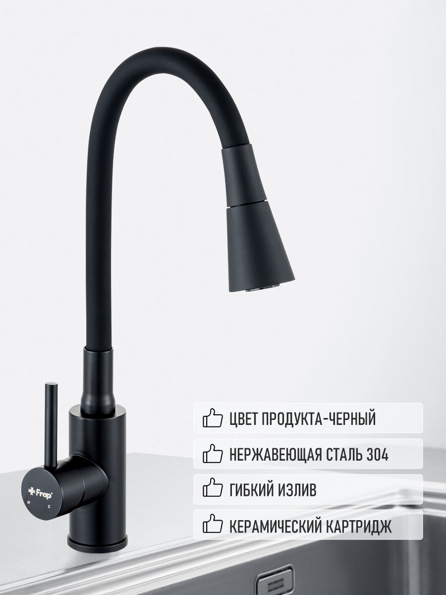 Смеситель для кухни с гибким изливом кран кухонный Frap YF4044-6 чёрный интересное:
