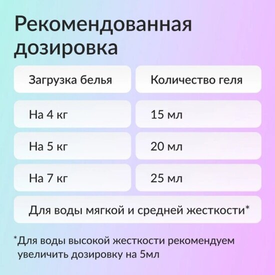 | Плюсы: | Отличный гель, купила себе и маме, обе остались довольны. Хорошо отстирывает, запах приятный. Нравится упаковка с дозатором, очень удобно в использовании. Цвет вещей после стирки не линяет. Мягкая упаковка тоже очень удобна |