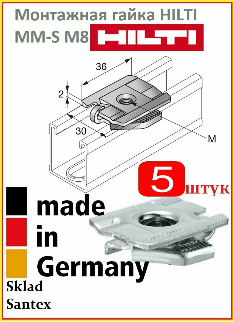HILTI Монтажная гайка для труб MM-S M8, 30 х 36 х 12 мм, 5 штук интересное: