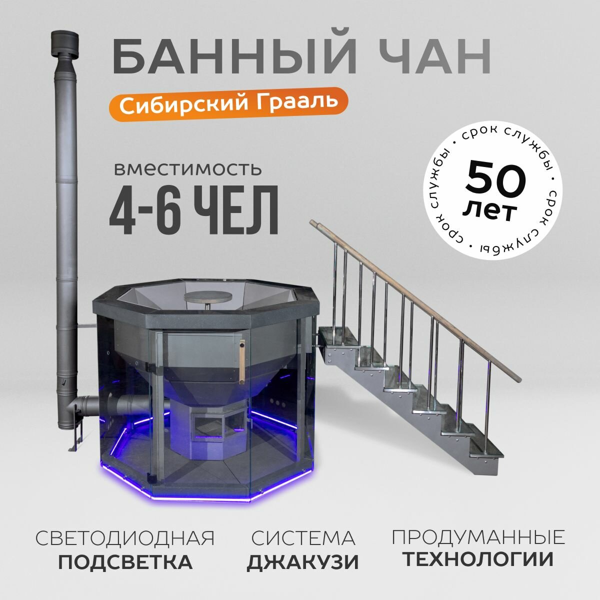 Купить Банный чан Сибирский Грааль на 6 человек с печью