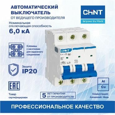 Автоматический выключатель CHINT NXB-63, 3P, 6A, 6кА, характеристика C 814168