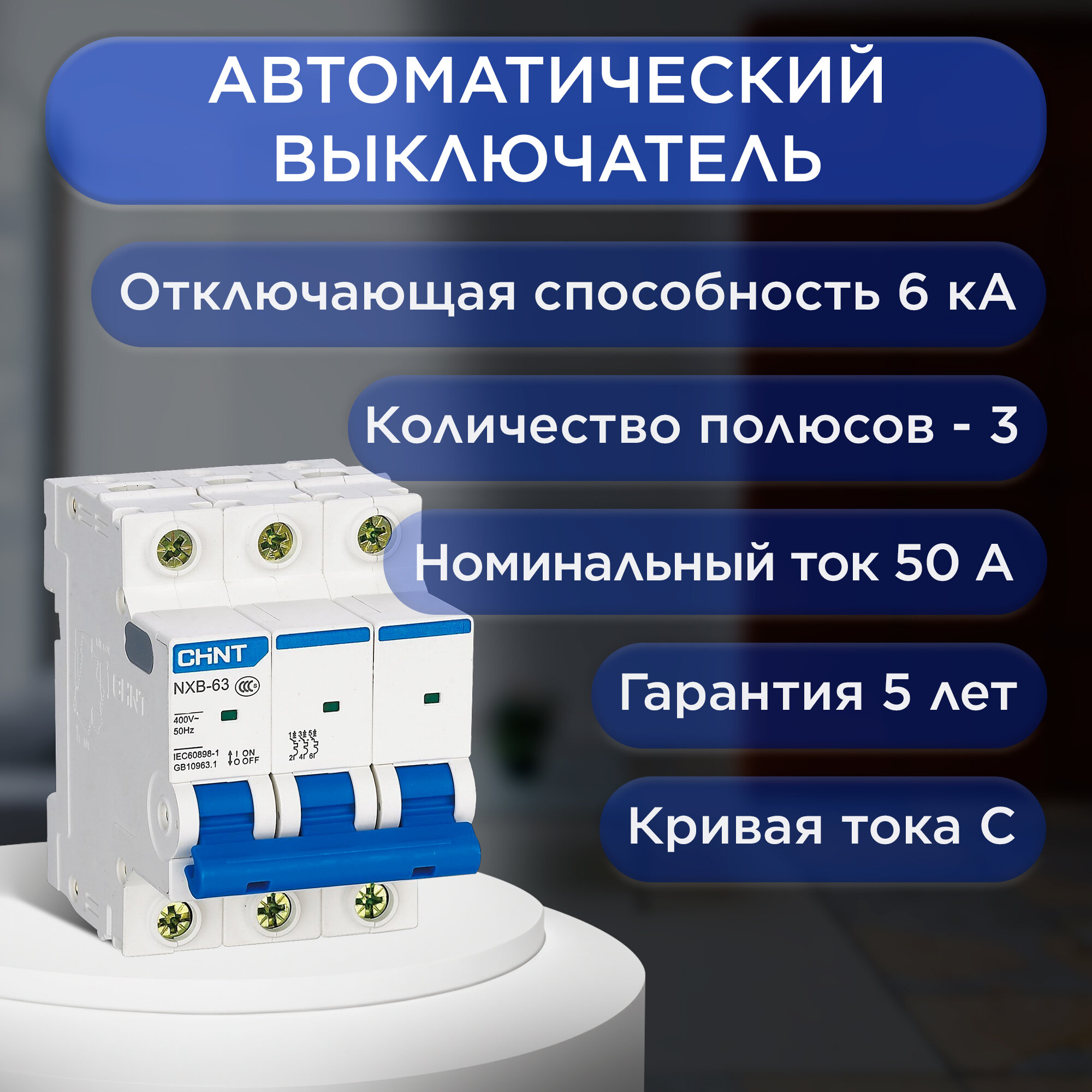 Автоматический выключатель CHINT NXB-63, 3P, 50A, 6кА, характеристика C 814175