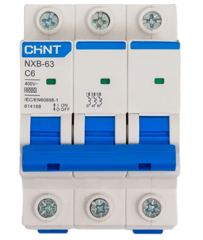 Автоматический выключатель CHINT NXB-63, 3P, 6A, 6кА, характеристика C 814168