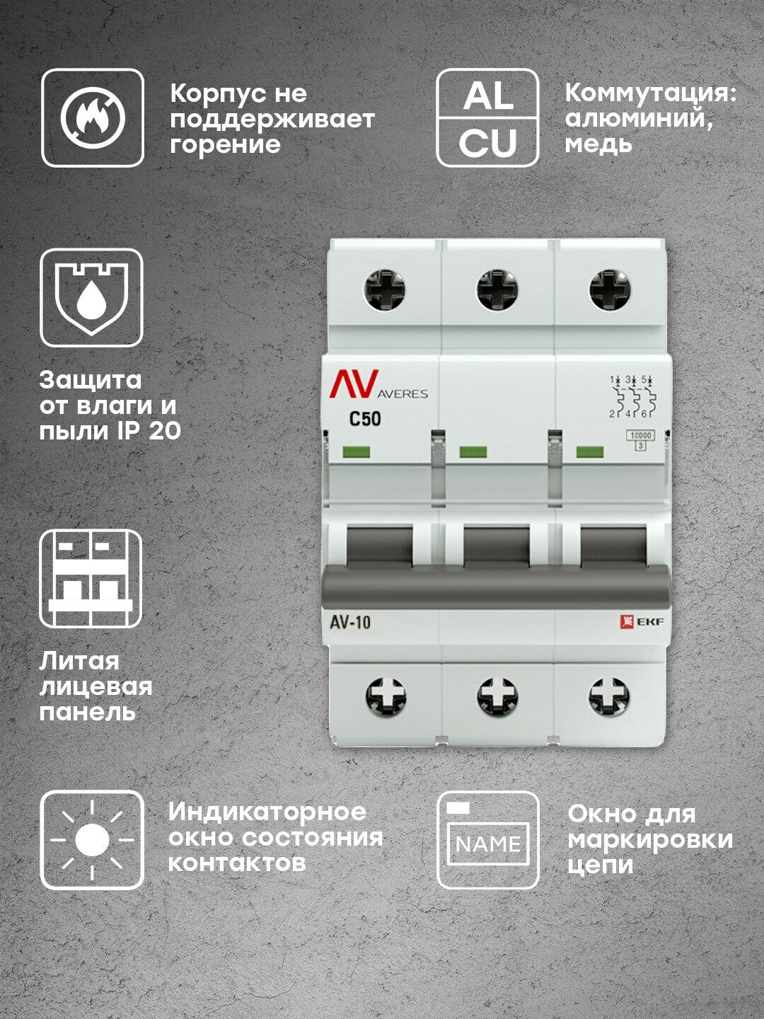 Выключатель автоматический EKF AVERES AV-10 3P 50A (C) 10kA - 1 шт.