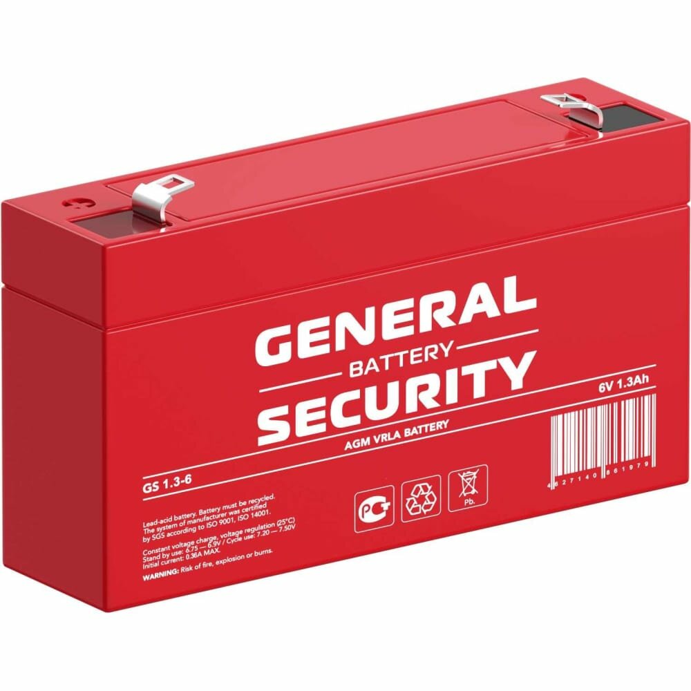 Аккумулятор General Security GS 1.3-6 6В 1,3Ач (4V 1.3Ah) для детского электромобиля, аварийного освещения, кассового терминала, GPS оборудования интересное: