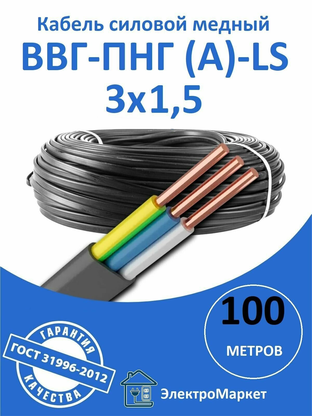 Ниже Вы можете прочитать отзывы на 100метр Кабель-провод ВВГ-п-НГ LS ГОСТ 3х1,5, ознакомится с подробными характеристиками, посмотреть интересные обзоры и фотографии на 100метр Кабель-провод ВВГ-п-НГ LS ГОСТ 3х1,5.