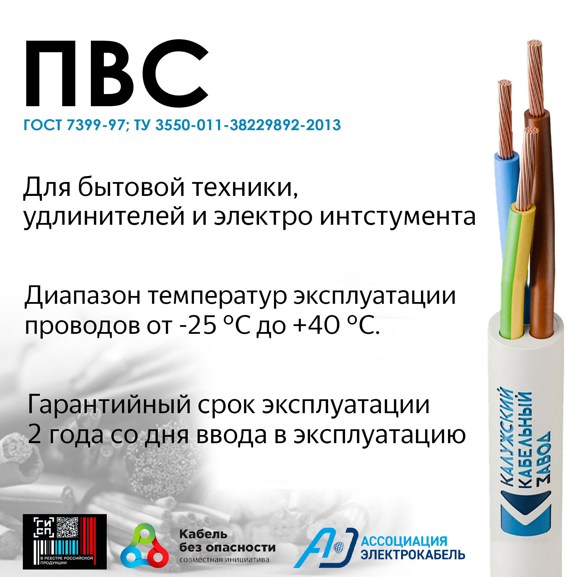 СохранитьПровод ПВС 3х6,0 3метра. ГОСТ Калужский кабельный завод интересное:
