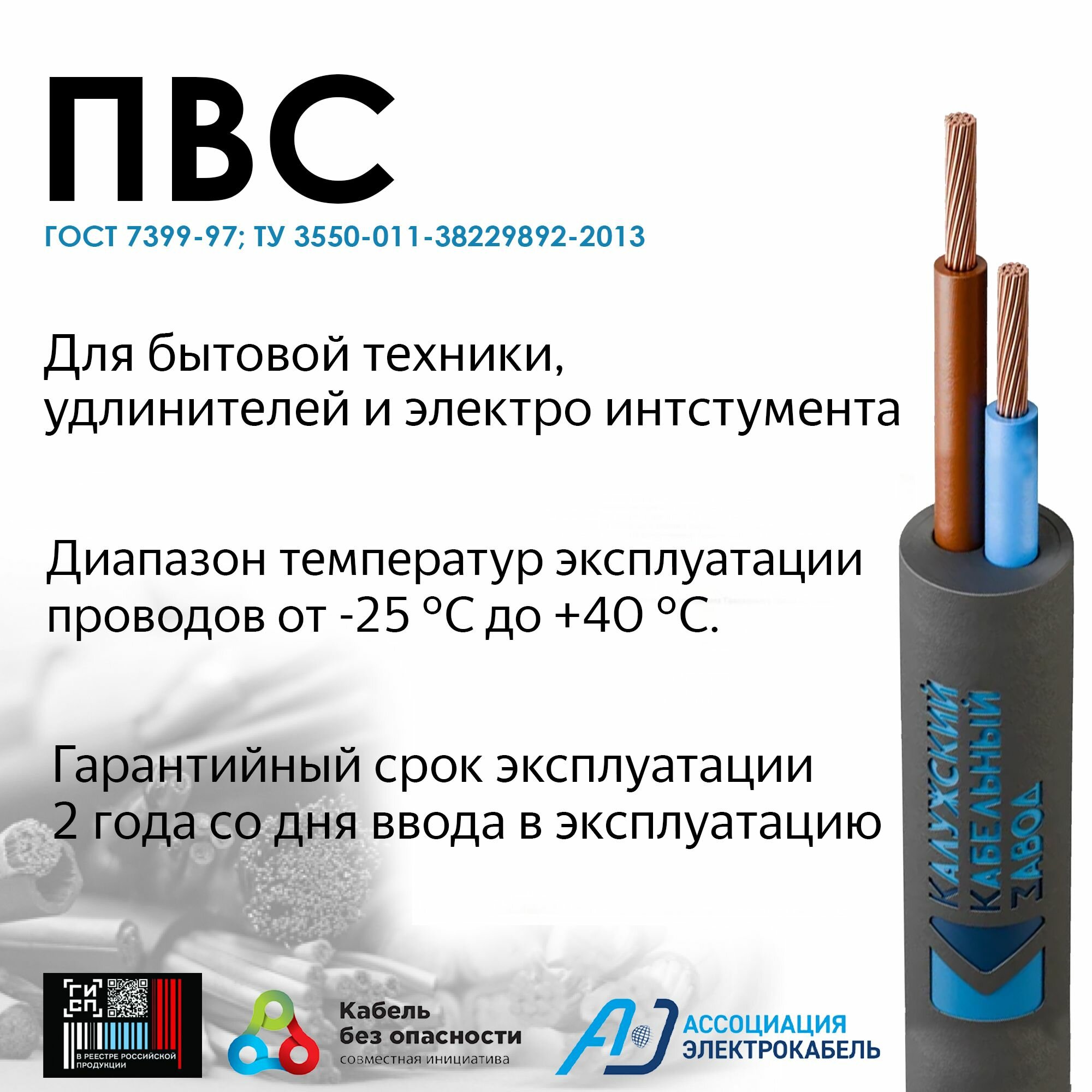 Провод ПВС 2х4.0 10метров ГОСТ Калужский кабельный завод