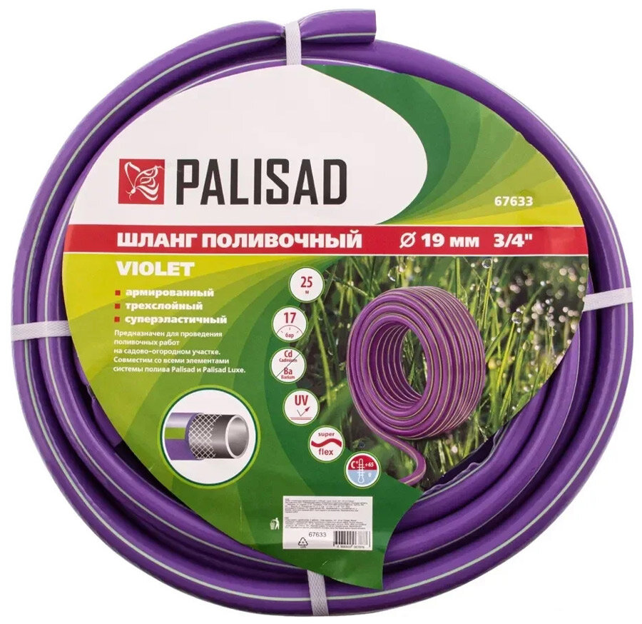 Шланг поливочный армированный, 3-х слойный, серия Violet, 3/4", 50 м Palisad ( 67634 )