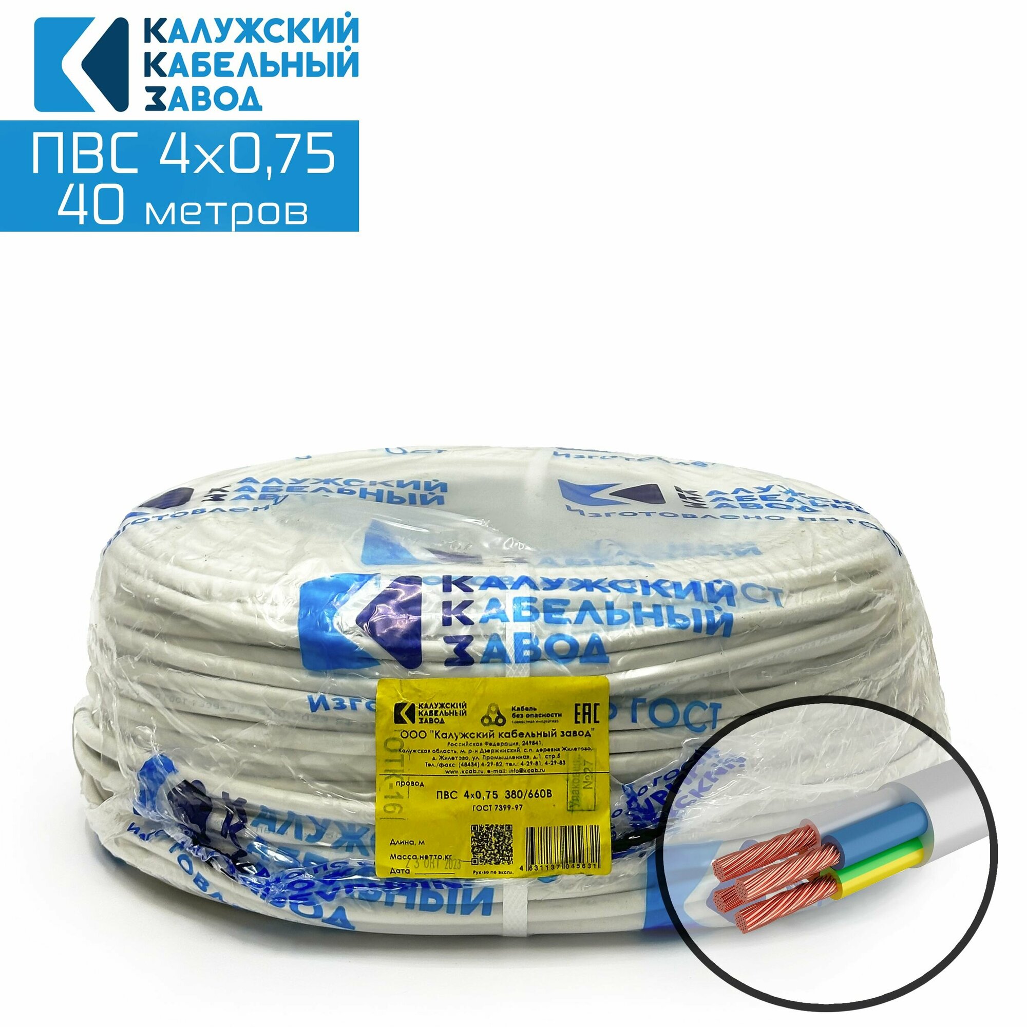 Купить Провод ПВС 4х0,75 ГОСТ Калужский кабельный завод. Белый. 40 метров