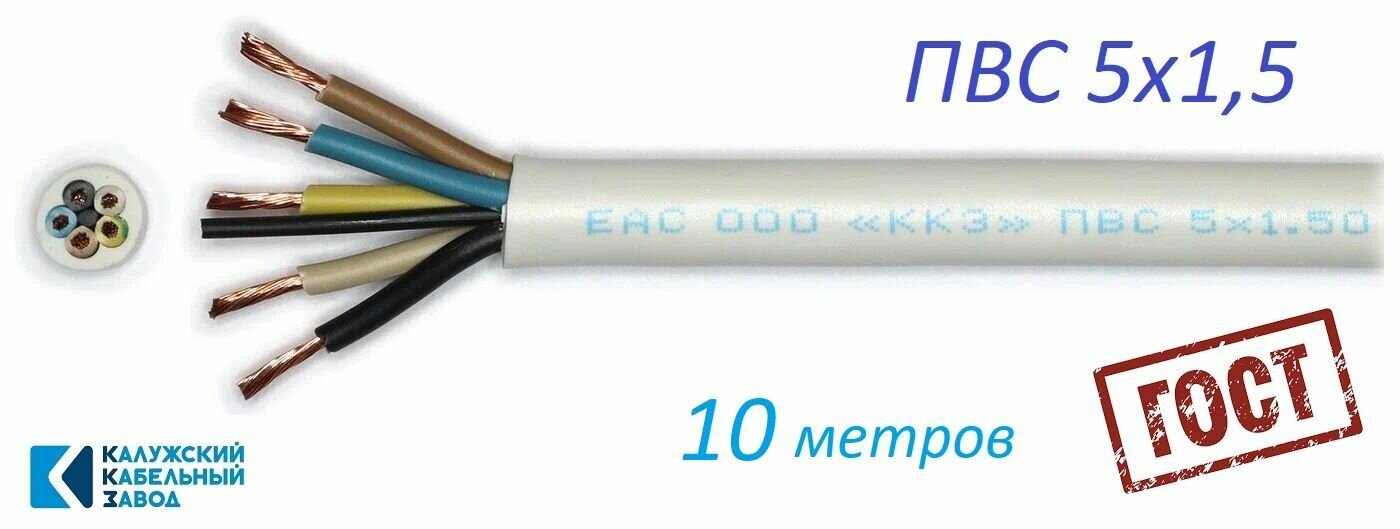 Провод ПВС 5х1.5 5метров ГОСТ Калужский кабельный завод