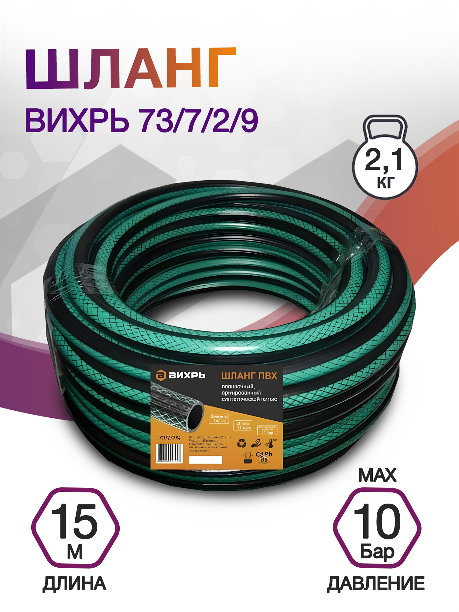 Шланг поливочный ПВХ ВИХРЬ15м