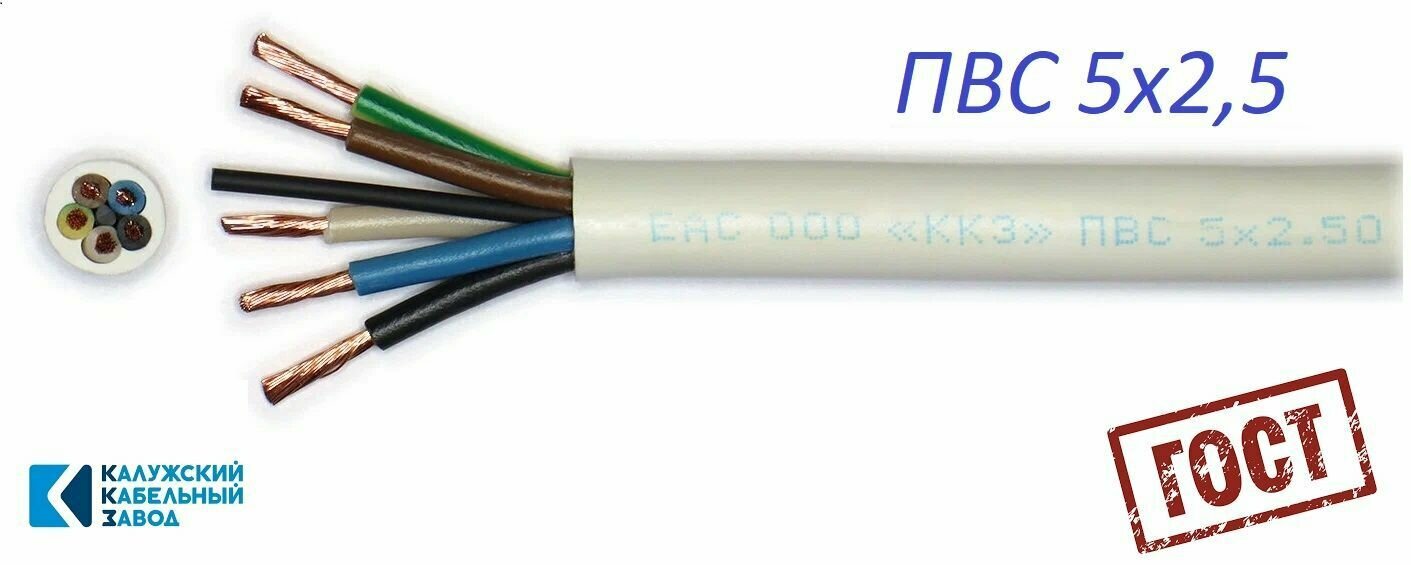 СохранитьПровод ПВС 5х2,5 ГОСТ Калужский кабельный завод. Белый. 10 метров интересное: