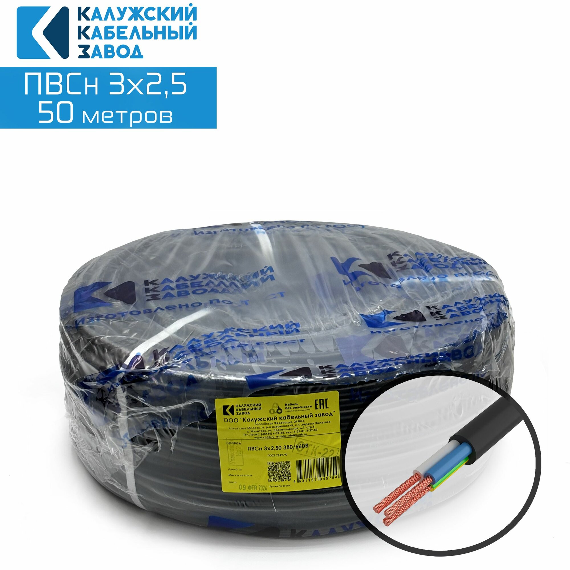 Купить Провод ПВС 3х2.5 50метров черный Калужский Кабельный Завод ГОСТ