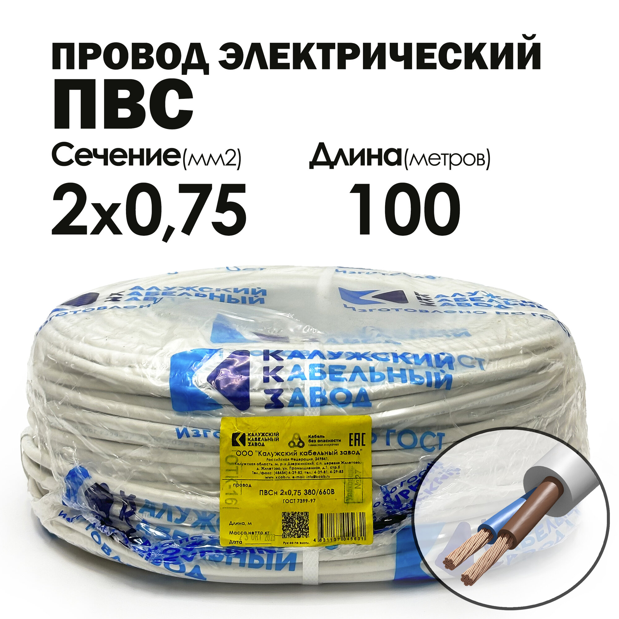 Купить Провод ПВС 2х0,75 ГОСТ Калужский Кабельный Завод (Белый)-100 метров