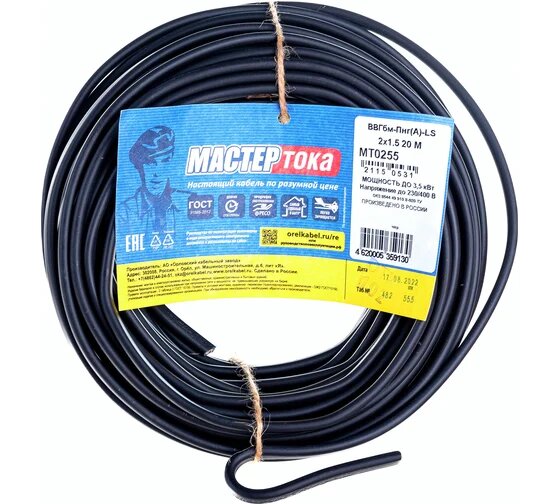 Ниже Вы можете прочитать отзывы на Кабель Мастер Тока ВВГбм-ПнгA-LS, 2x1.5, черный, 20м МТ0255, ознакомится с подробными характеристиками, посмотреть интересные обзоры и фотографии на Кабель Мастер Тока ВВГбм-ПнгA-LS, 2x1.5, черный, 20м МТ0255.