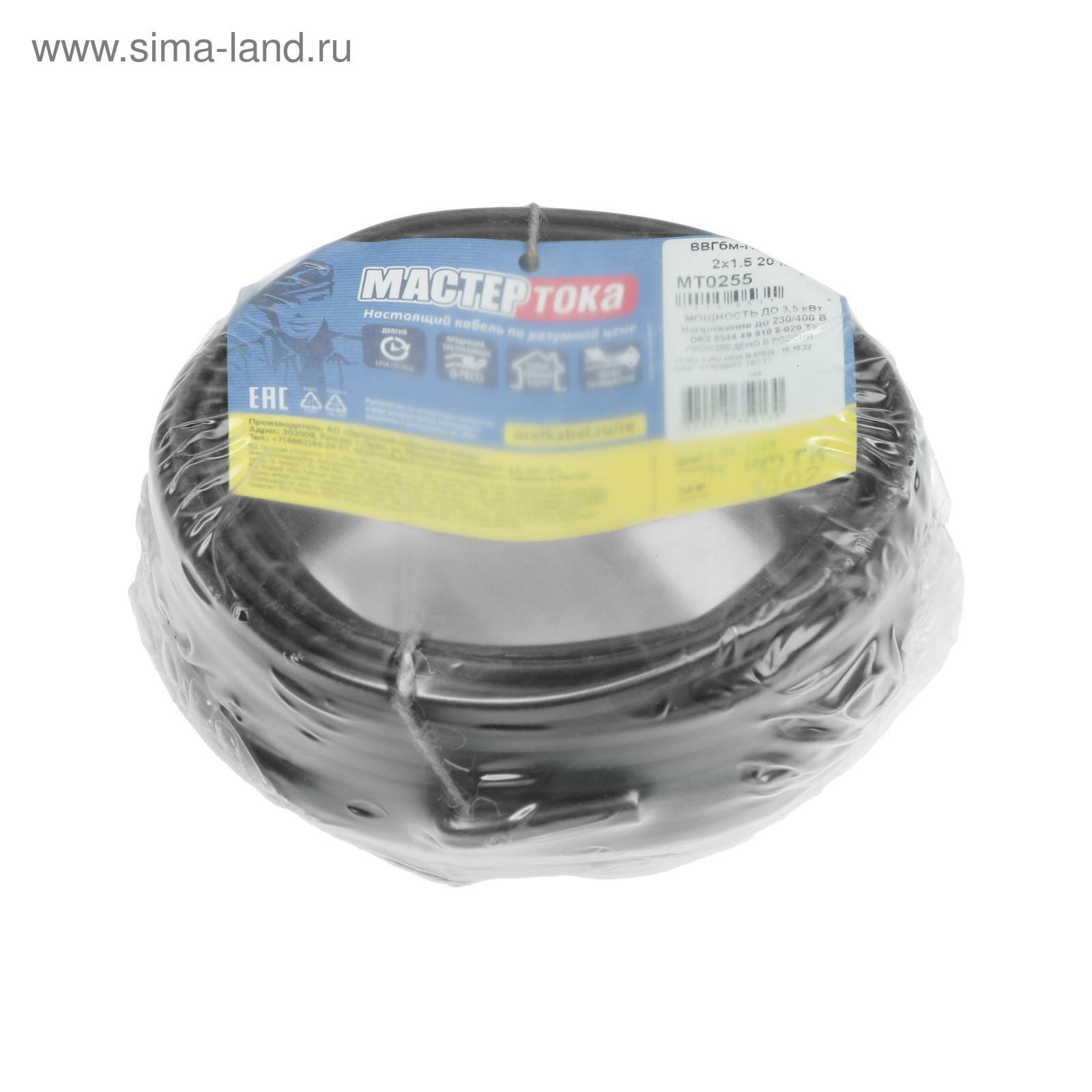 Кабель бытовой монтажный ВВГ-Пнг(A)-LS 2х2.5 20 метров Мастер Тока