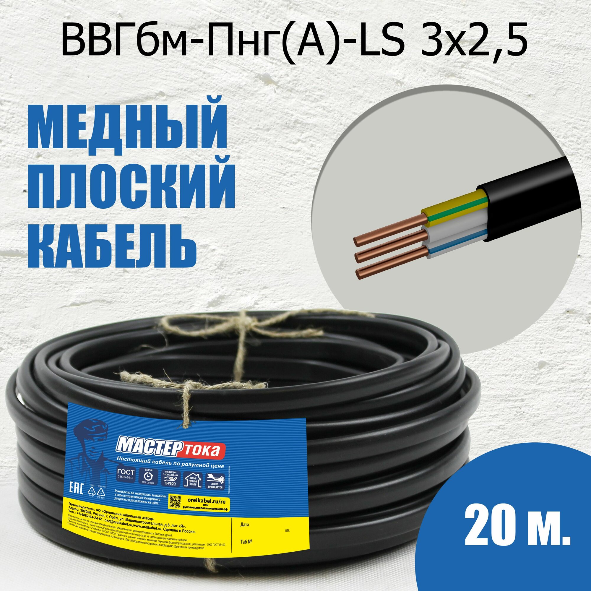 Ниже Вы можете прочитать отзывы на Кабель бытовой монтажный ВВГ-Пнг(A)-LS 3х2.5 20 метров Мастер Тока, ознакомится с подробными характеристиками, посмотреть интересные обзоры и фотографии на Кабель бытовой монтажный ВВГ-Пнг(A)-LS 3х2.5 20 метров Мастер Тока.
