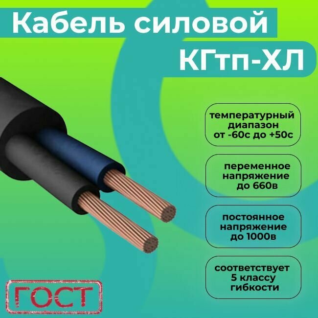 Кабель силовой гибкий КГтп-ХЛ 2х1,5 ГОСТ 31945-2012 5 м.