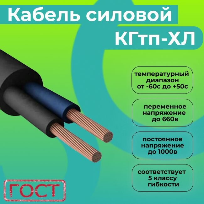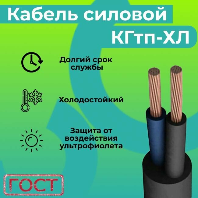 Кабель силовой гибкий КГтп-ХЛ 2х1,5 ГОСТ 31945-2012 10 м.
