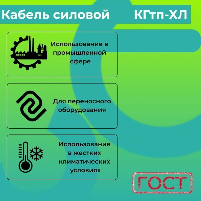 СохранитьКабель силовой гибкий КГтп-ХЛ 2х4 ГОСТ 31945-2012 50 м. интересное:
