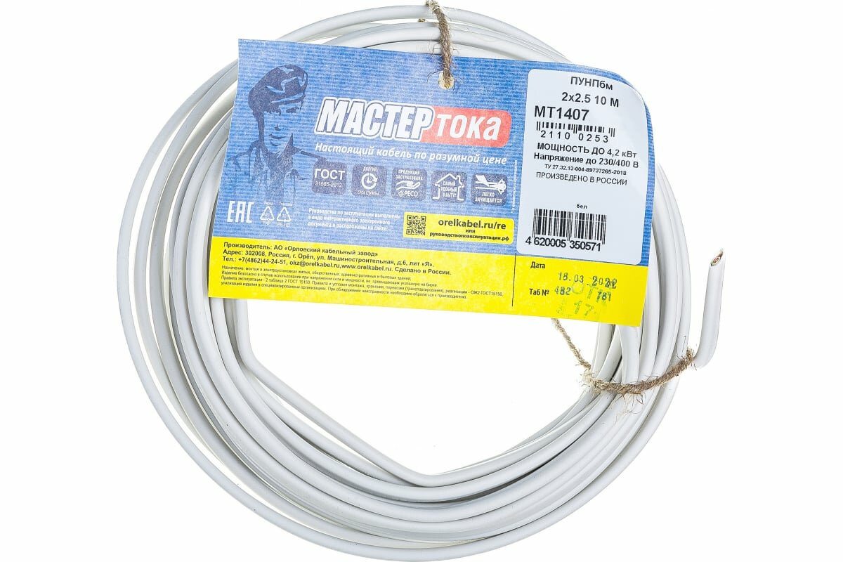 Купить Провод пунпбм 2Х2.5 бел 10м Мастер Тока ТУ