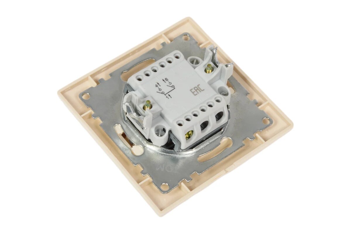 Выключатель проходной переключатель на 2 направления (одноклавишный, с подсветкой, 10А, слоновая кость, Таймыр, IP20)