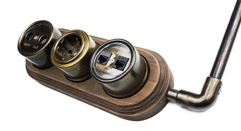 Розетка двойная ретро керамическая Арбат с заземлением черная, Interior Electric SCIE/W-03-2