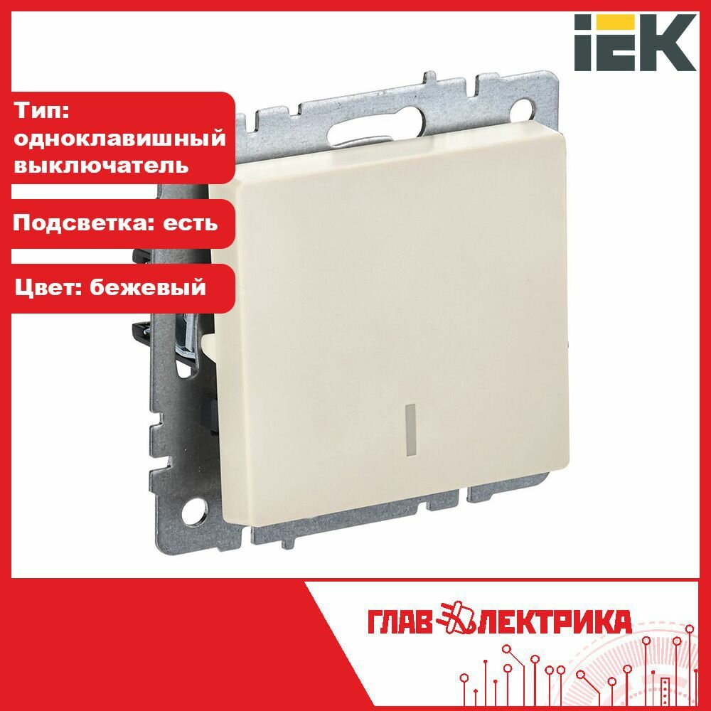 Купить Выключатель встраиваемый одноклавишный с подсветкой IEK BRITE BR-V10-1-10-K10 ВС10-1-1-БрКр бежевый