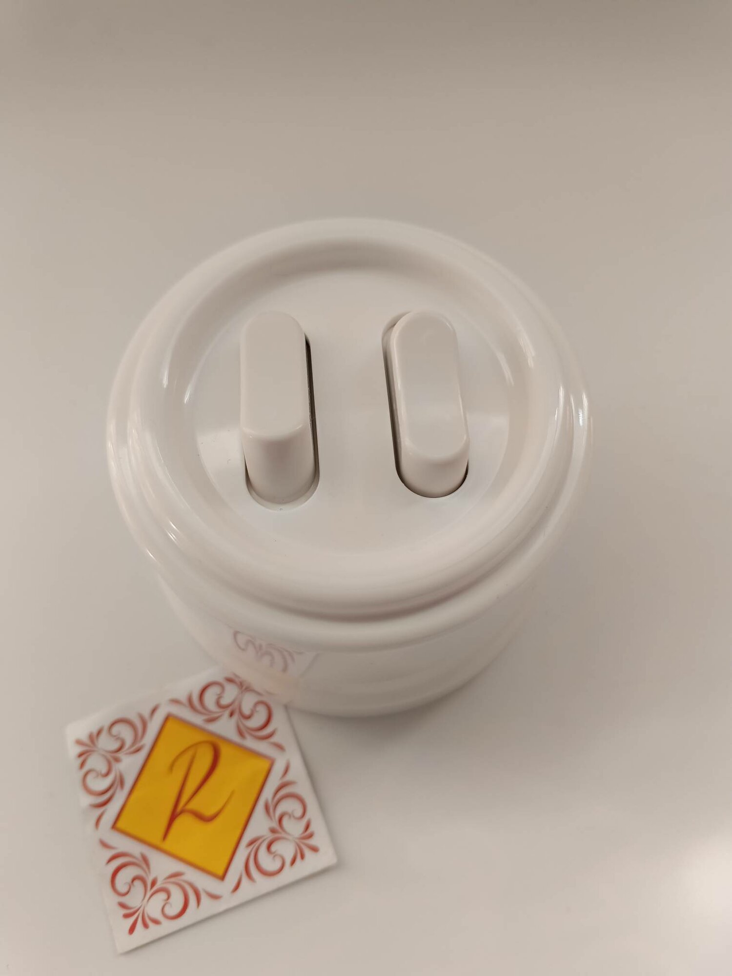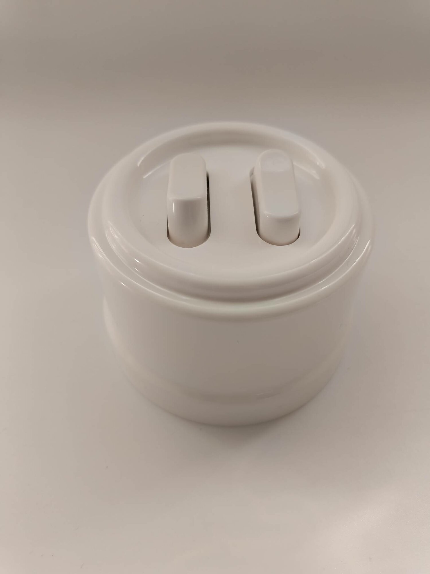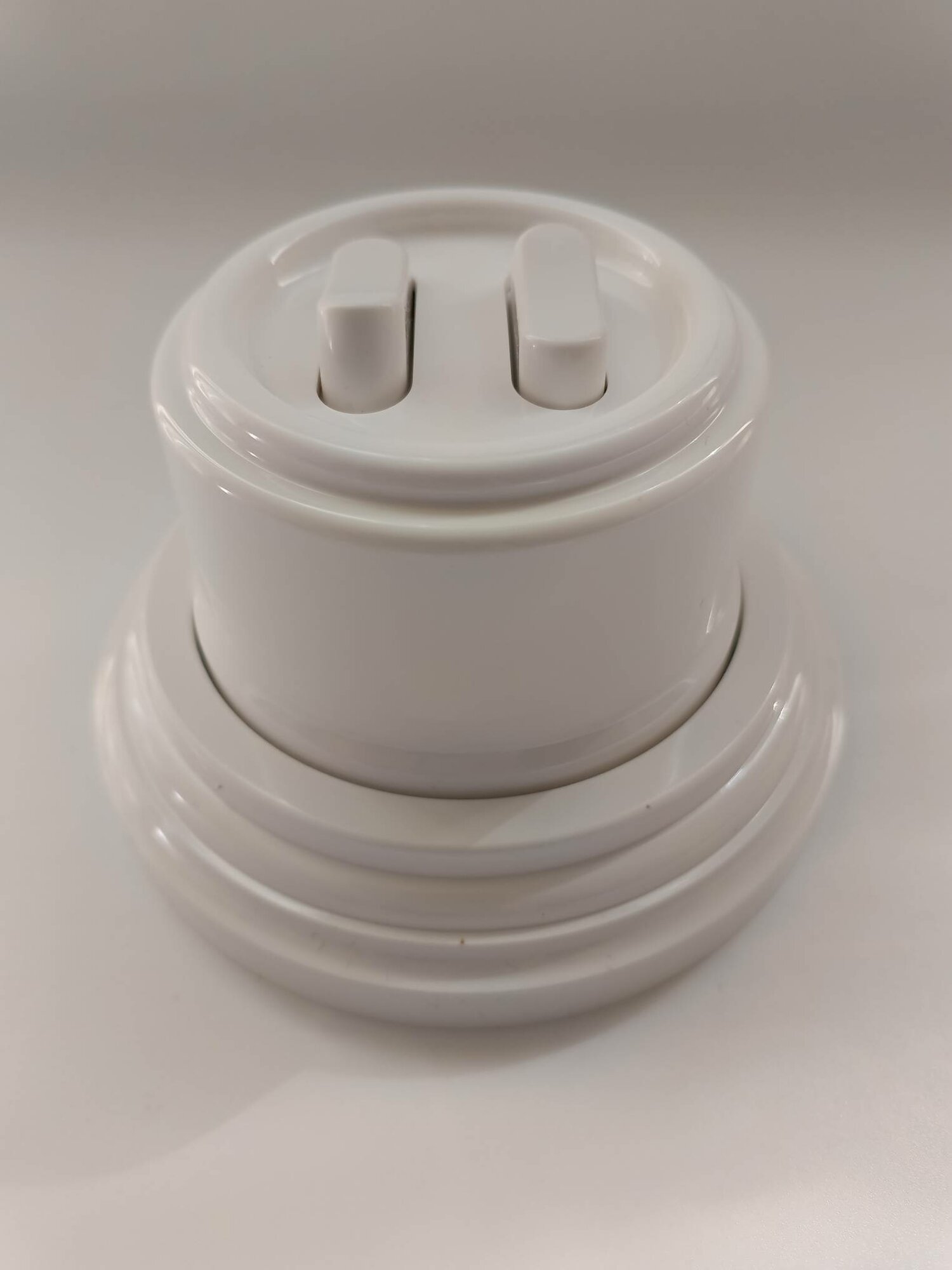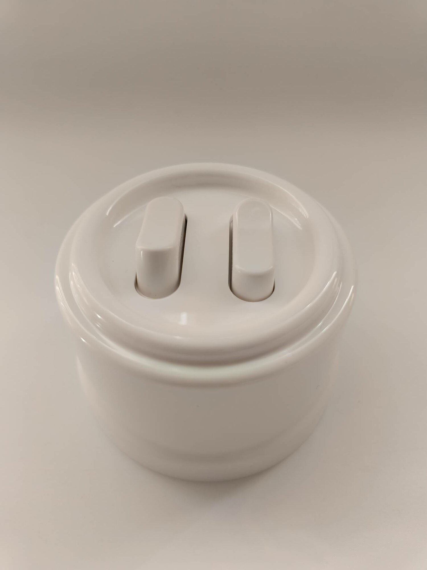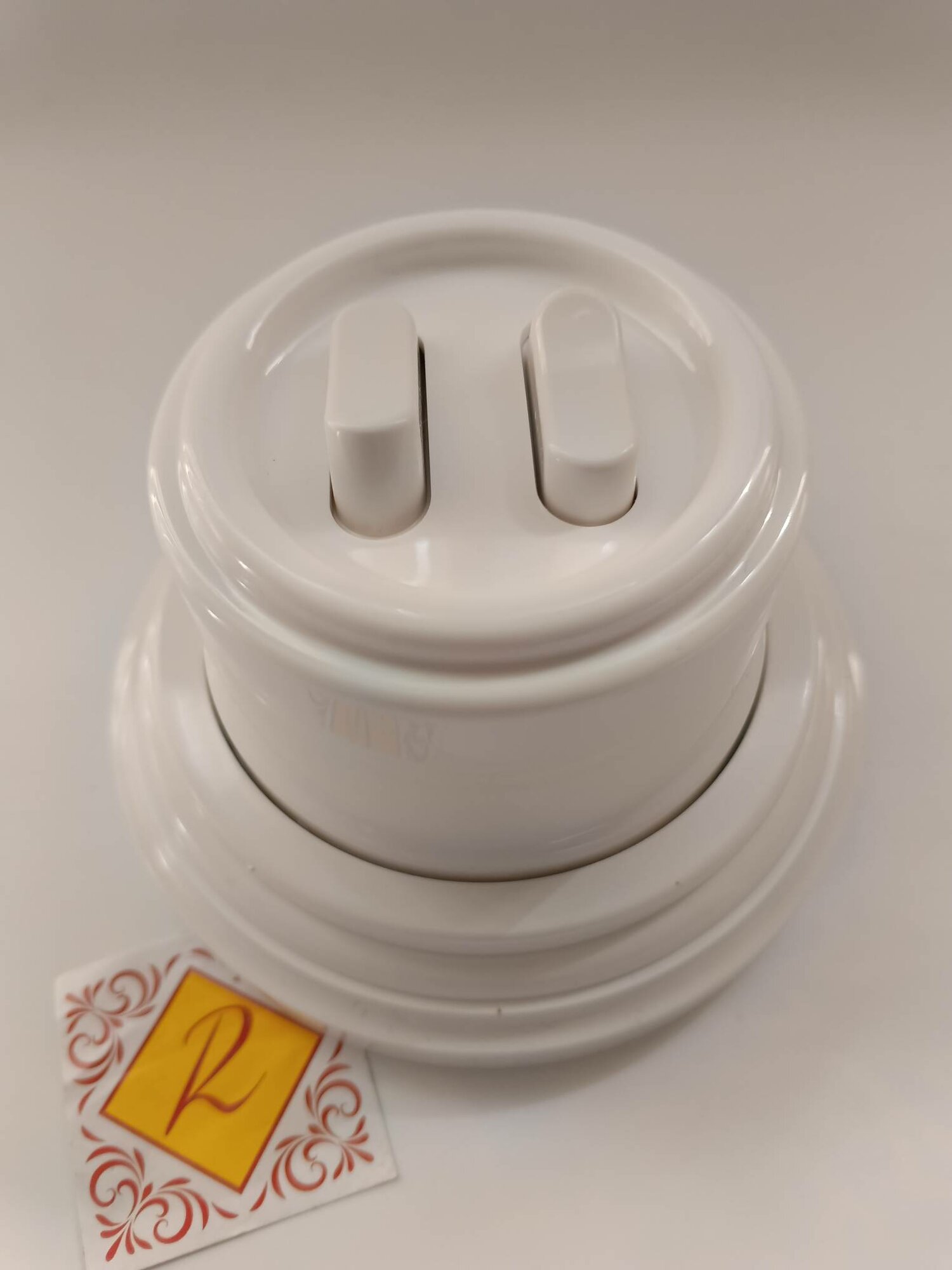 Винтажный ретро выключатель 2 клавишный пластик, (клавишный), белый, B1-222-21, Bironi