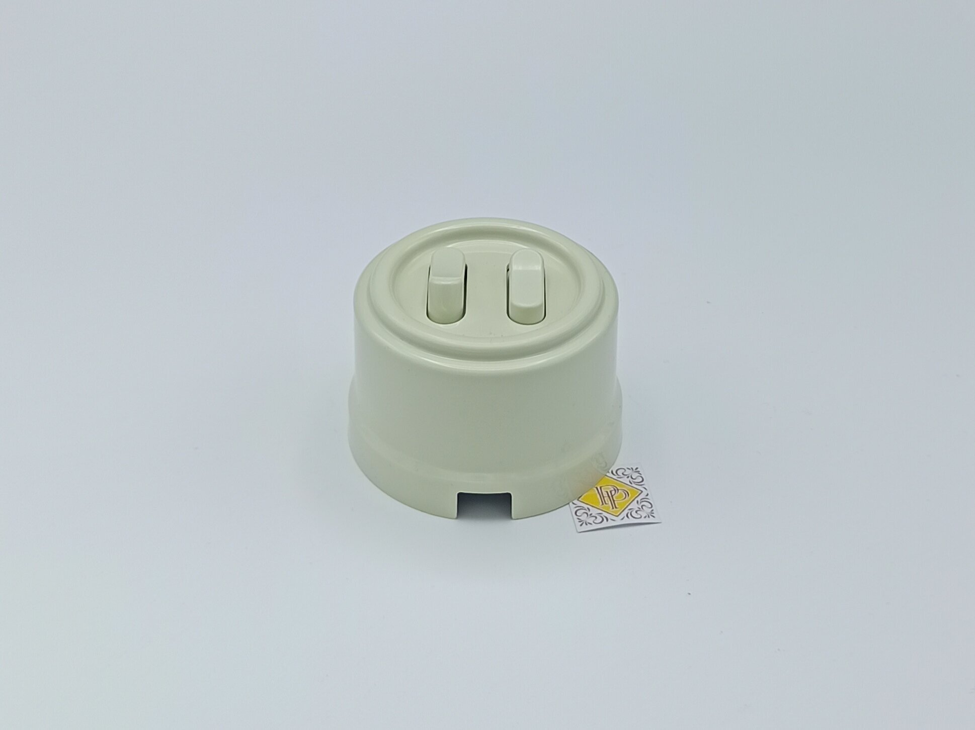 Винтажный ретро выключатель 2 клавишный пластик, (клавишный), слоновая кость, В1-222-211, Bironi
