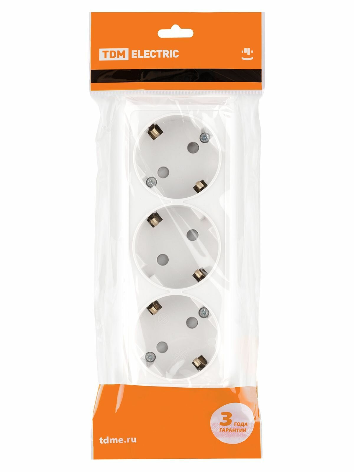 Розетка 3-х местная горизонтальная 2П+3 открытой установки IP20 16A с з/ш белая "Ладога" TDM интересное: