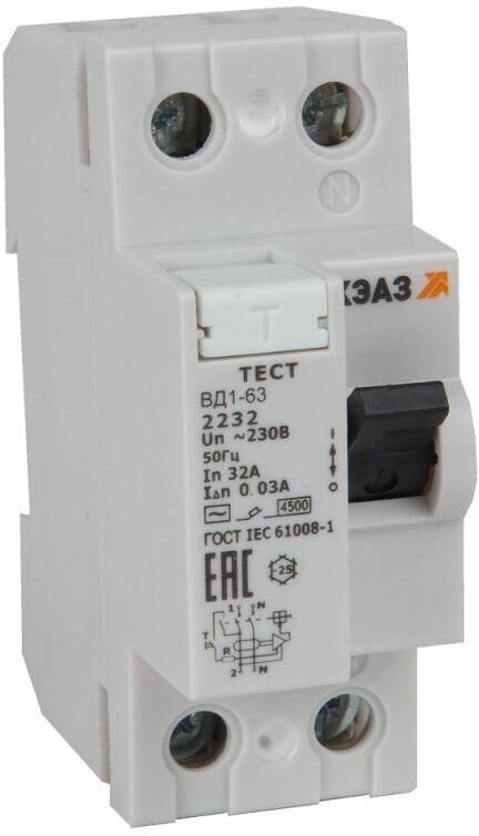 КЭАЗ ВДТ без защиты от сверхтоков ВД1-63-2263-АС-УХЛ4 (2P, 63, 30mA) интересное: