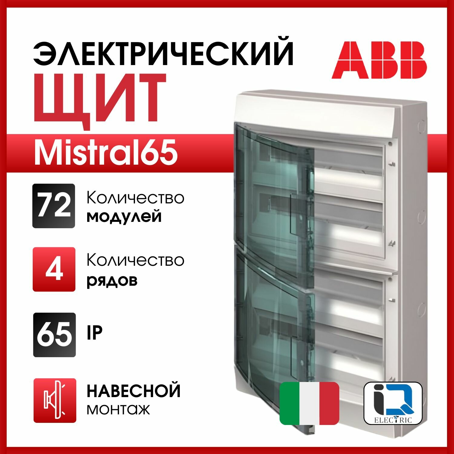 Бокс навесной ABB MISTRAL65 на 72 модуля (4x18) с клеммами, прозр. дверь 1SLM006501A1209