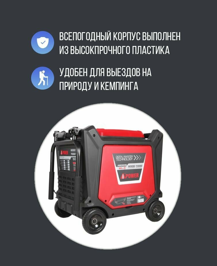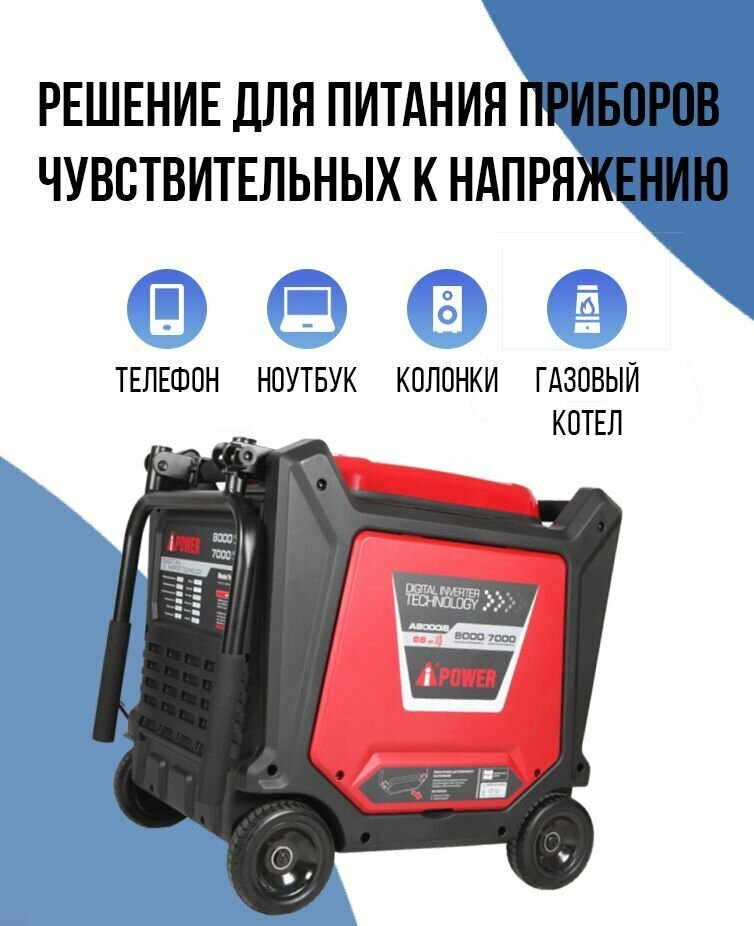 Генератор бензиновый инверторный A- IPOWER A8000IS 8кВт, 105кг бензогенератор с ручным и электро запуском двигателя, электростанция интересное: