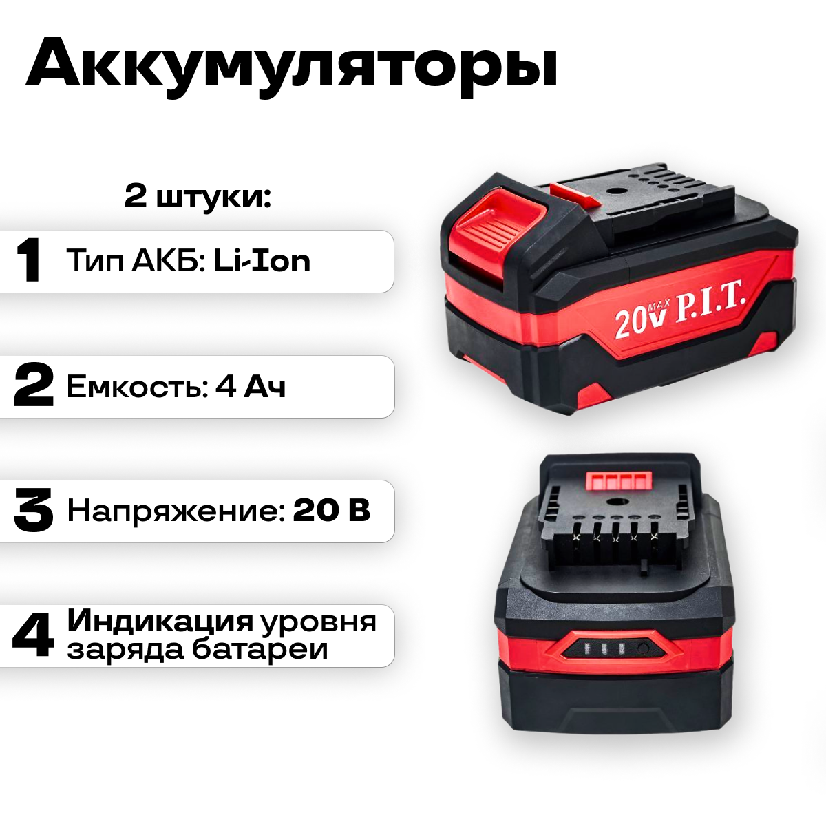 | Аккумуляторная система | P.I.T. OnePower 20 V |