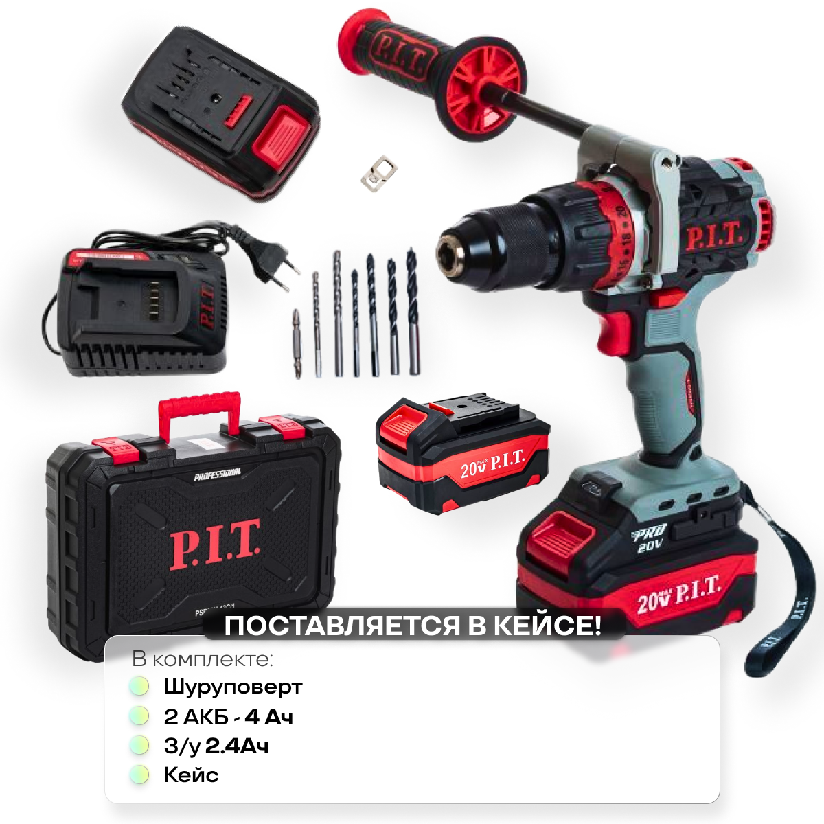 Купить Шуруповерт аккумуляторный бесщеточный PSB20H-13C/1 P.I.T., кейс, З/У, АКБ 4Ач + доп. АКБ 4Ач