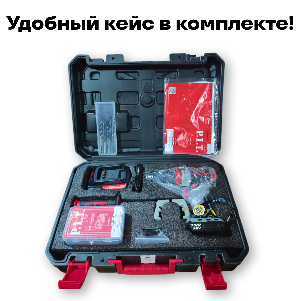 Шуруповерт аккумуляторный бесщеточный PSB20H-13C/1 P.I.T., кейс, З/У, АКБ 4Ач + доп. АКБ 4Ач