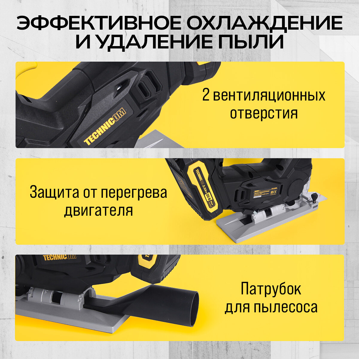 Лобзик аккумуляторный TECHNICOM TC-CJ520, 20В 2Ач, 0-2400 ход/мин, LED подсветка, 45° угол распила, 3 режима маятникового хода интересное: