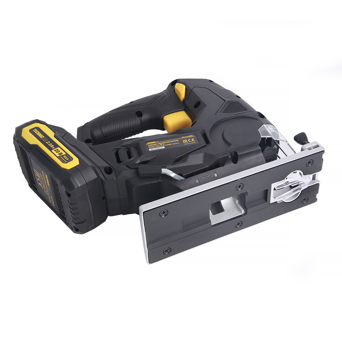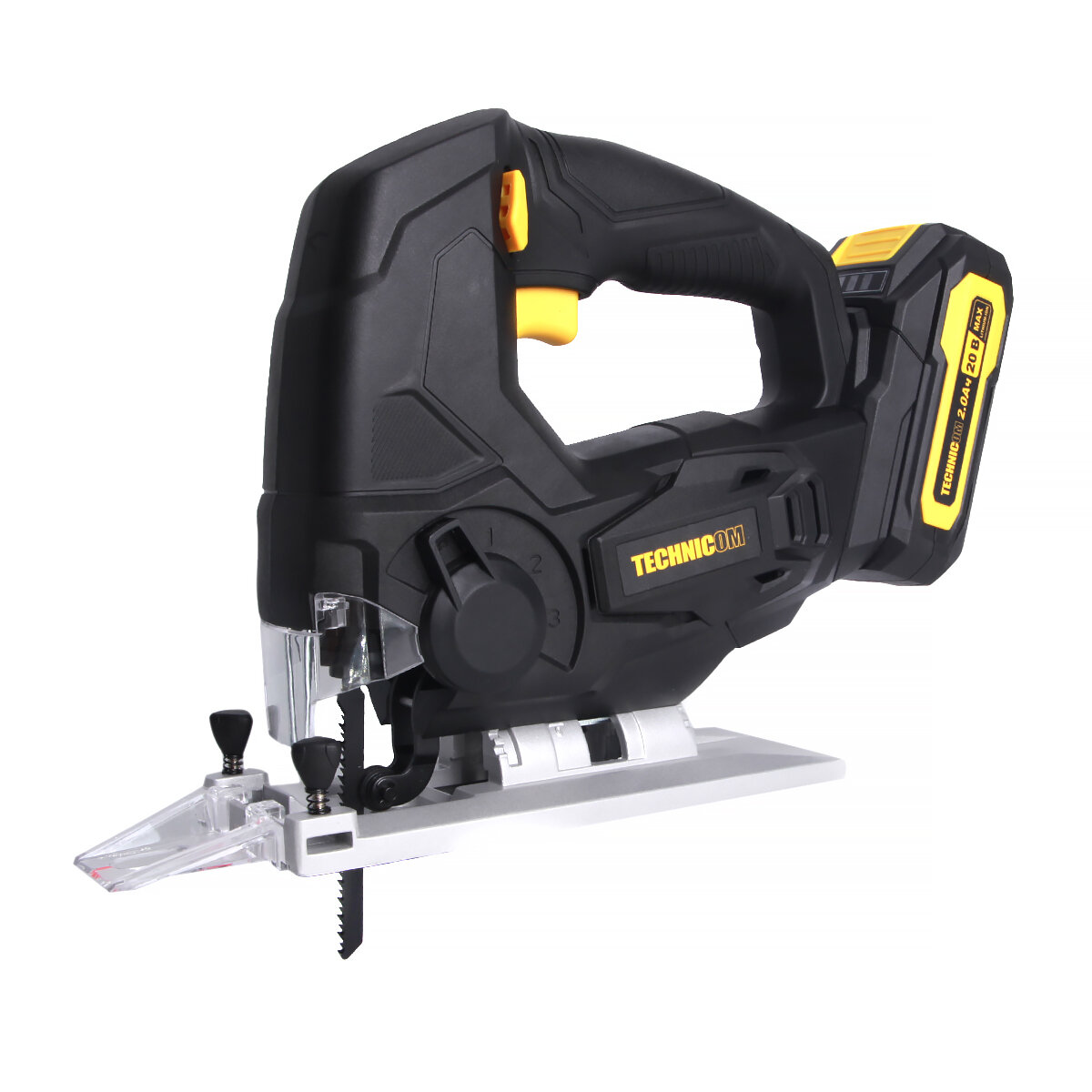 Купить Лобзик аккумуляторный TECHNICOM TC-CJ520, 20В 2Ач, 0-2400 ход/мин, LED подсветка, 45° угол распила, 3 режима маятникового хода