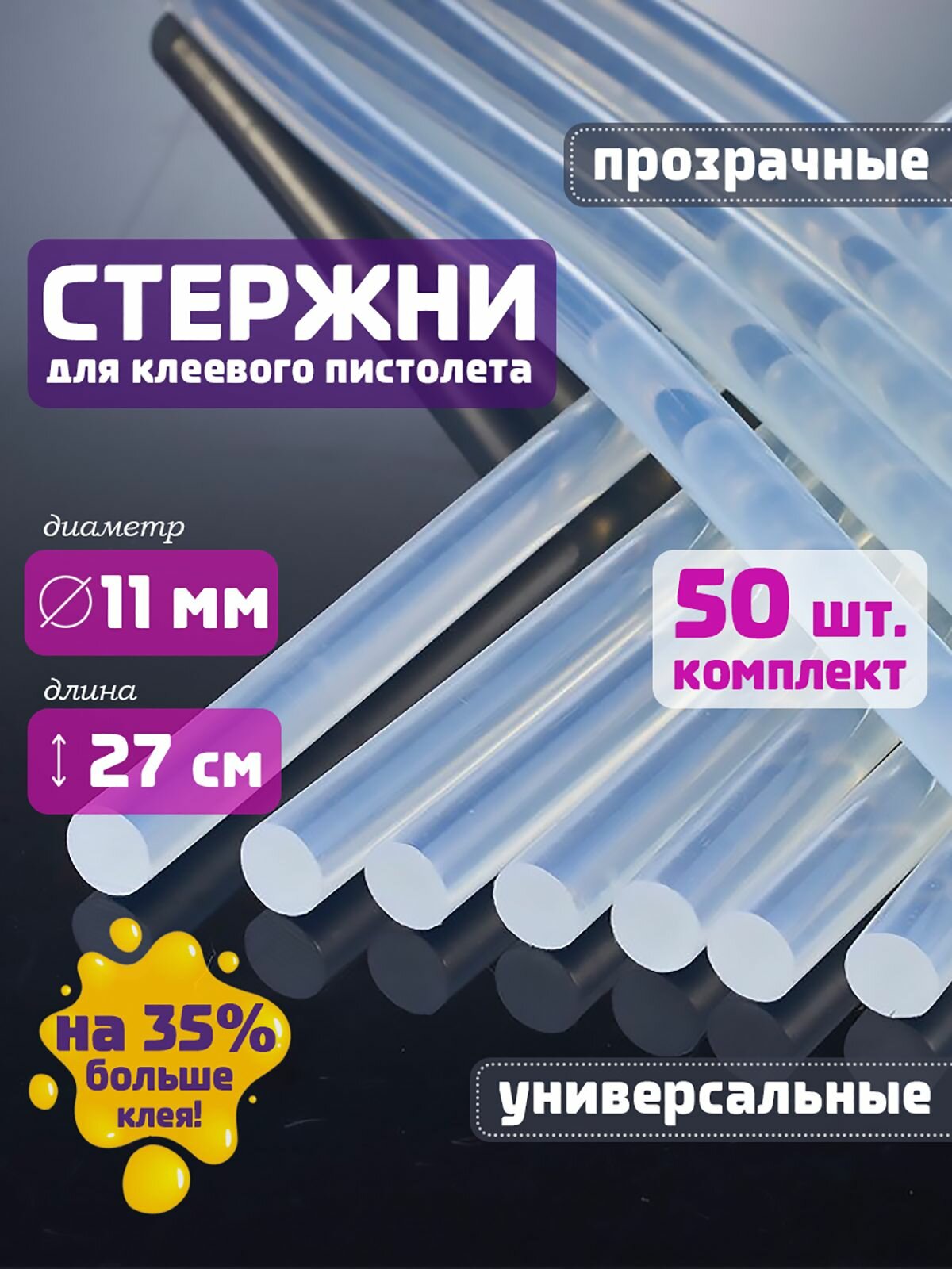 Купить Клеевые стержни для клеевого пистолета 11 мм х 270 мм, термоклей, прозрачные 50 штук.