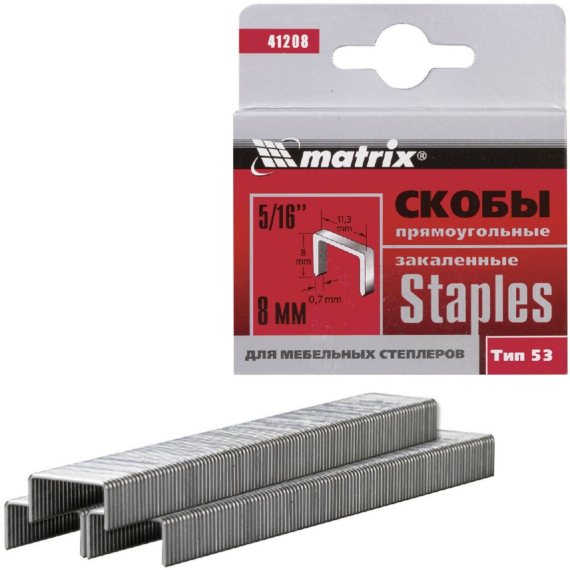 Скобы Matrix 8 мм, для мебельного степлера, закаленные, тип 53, 1000 шт 41208