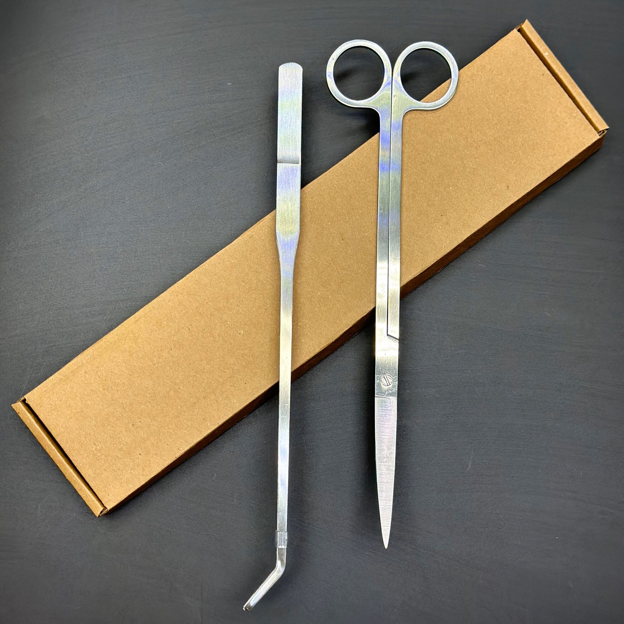Пинцет прямой 27 см + Ножницы изогнутые 25 см - набор для ухода за живыми растениями в аквариуме, акваскейпе, палюдариуме