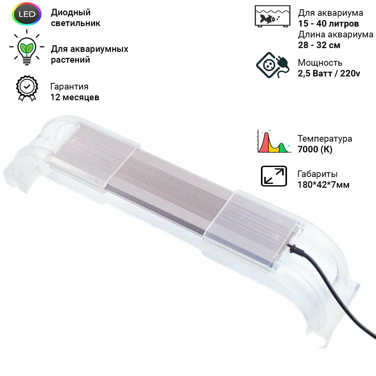 Диодный светильник для аквариума и растений Sunsun ADP-200J 180 мм. (для акв. длиной 28-32 см. 2,5 Вт) интересное: