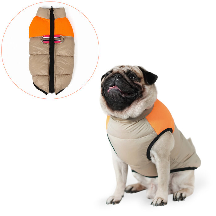 Куртка для собак на молнии, размер 18 (ДС 40 см, ОГ 50 см, ОШ 38 см), бежевая с оранжевым интересное: